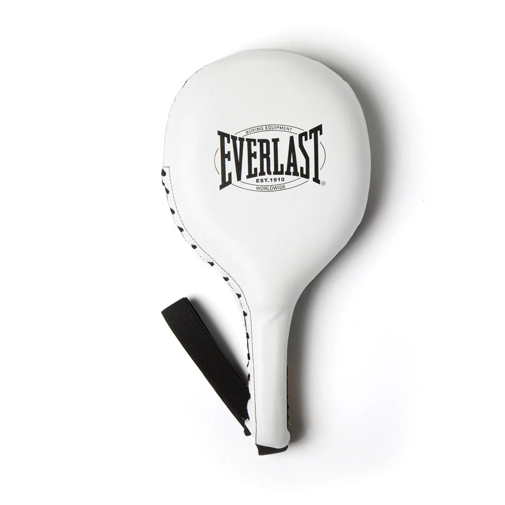 The Everlast 1910 Striking Paddle is an essential tool for boxing and fitness training, perfect for improving your strike accuracy, cardio fitness, endurance, and partner training skills. The ergonomically correct handle and full leather construction with lace closure and plastic reinforcement provide comfort, grip, and durability, making it ideal for practicing various strikes and punches. Whether you're a beginner or a seasoned pro, the Everlast 1910 Striking Paddle is a reliable choice for all your training needs.