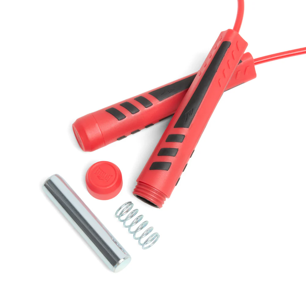 The Everlast Weighted Jump Rope is a great way to burn calories and work on that cardio so you can go the distance. Integrated precision ball bearing rotation joint allows for both speed and agility footwork training without losing rotation. Strategically placed grip panels keep the rope from slipping while trimmable 11ft rope allows for a customizable length for athletes of all sizes. Jump into fitness with the Everlast Weighted Jump Rope.